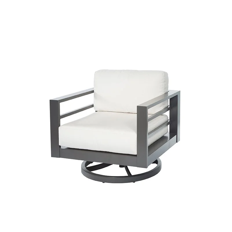 Ebel Inc.’s Palermo Club Swivel Rocker- offers minimal height with a modern, linear look.